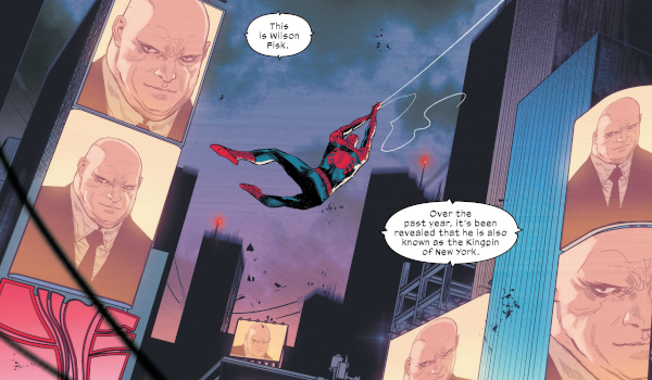 There are a few more Spider-Men since the last time I checked in with Ultimate Spider-Man. Peter Parker is still our main Spidey, who attacks the Kingpin and Mister Negative, while thw workings of Otto Octavius (our second “Superior” Spider-Man) broadcast Ben Parker and J. Jonah Jameson‘s truth about the Kingpin to the city.