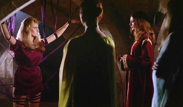 While Morgane attempt to seduce Françoise in the castle, in the dungeon her immortal crones break the will of the captive Anna and convince her to give up her soul and join them rather than live life as an old hag in the castle’s dungeon. Eventually, Françoise accepts the advice and help of Mograne’s manservant (Alfred Baillou) and seduces one of Morgane’s entourage (Régine Motte) to earn her freedom only to discover the world outside of sorceress’ realm is far less interesting, and far more dreary, than the one she’s just escaped from.