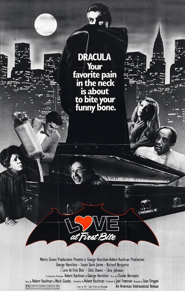 Love at First Bite is arguably even more ridiculous starring the world’s tannest man George Hamilton as Count Dracula who attempts to fit into New York City while stalking a fashion model (Susan Saint James) he belives to be the reincarnation of his great love and being perused by a descendant of the world’s greatest vampire hunter (Dick Shawn).