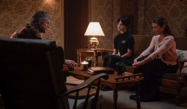 Heretic is half a good movie that unfortunately falls completely off a cliff into unimaginative horror. The setup is strong as we meet two young Mormon missionaries making their final stop of the day to share the word of the Church of Jesus Christ of Latter-day Saints with the middle-aged Mr. Reed (Hugh Grant). Tailor-made to play off an actor like Grant’s collective work, the charming man is of course not what he seems as the two young women slowly realize as an open discussion of religion becomes something far darker.