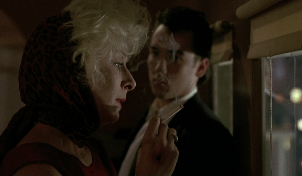 John Cusack is the central pillar to the film connecting the other characters as short-con expert Roy Dillion whose slight mishap trying to scam the wrong bartender puts him in the hospital for a short stay. It’s there his girlfriend Myra (Annette Bening) and Roy’s estranged mother Lily (Anjelica Huston) have their first, but far from last, fateful meeting. Their last will be even more memorable.
