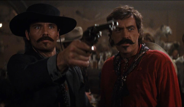 Despite it’s troubled production, and lengthy running time, Tombstone was both a critical and box office success. It takes about an hour for the tensions between the Earps and the Cowboys (most notably Powers Boothe, Michael Biehn, and Stephen Lang) to finally boil over leading to the Gunfight at the O.K. Corral and the multiple shoot-outs that followed. Also thrown into the mix are Wyatt’s troubled marriage and his interest in a travelling performer (Dana Delany) who catches his eye which ultimately allows for an upbeat ending following a bloody final act.