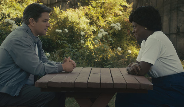 Built around Damon’s performance, we watch the gambler with a silver tongue slowly convince everyone else at the company, and even Jordan’s parents, that Nike is the right fit for the basketball player despite all the obstacles involved (including a limited budget and a client in Jordan, and his agent, who had no interest in working with Nike). We get some nice moments of Damon with Affleck, Tucker, and Viola Davis as the unlikely partnership begins to pick up some steam. And Maher steals a scene or two as the company’s shoe guru responsible for the design of the original Air Jordan sneakers.