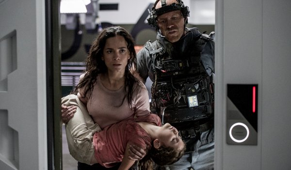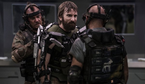 Along for the ride are Max’s childhood friend Fray (Alice Braga) who has recently returned to the slums after getting her medical license, Fray’s cancer-ridden daughter (Emma Tremblay) who like Max will die if she stays on Earth, Max’s terrorist pal Spider (Wagner Moura) who hooks Max up with an exoskeleton and hard drive wired into his brain, and Max’s old boss (William Fichtner) who has information inside his head that Spider is willing to trade to ensure Max gets to Elysium.