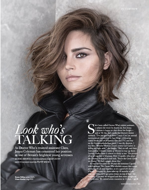 Doctor Who actress Jenna Coleman can be found in both the September issue of Flaunt Magazine and the October issue of Harrods. You can find pics from both photo shoots inside.