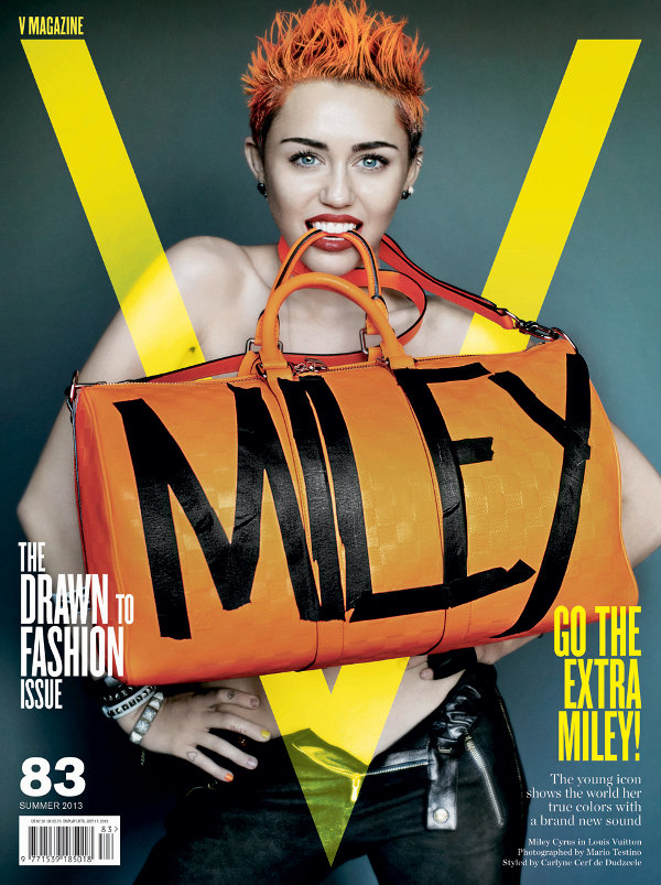 Miley Cyrus sat down for an interview with her music producer Pharrell Williams and posed for a series of photos for photographer Mario Testino in the latest issue of V Magazine. In the interview the the singer/actress discusses her new hip-hop sound, her first post-Disney album, her engagement to Liam Hemsworth, finding her own tone without auto-tune, hair much talked about new hairstyle, and continuing to grow as an artist. You can find more photos and behind-the-scenes video from the photoshoot inside.