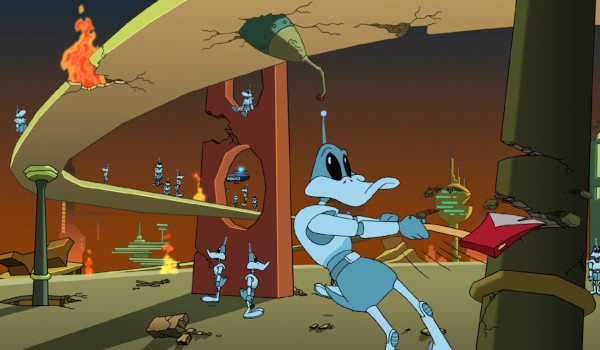 Taking a few good-natured shots at the worst of the Star Wars films (Star Wars: Episode II – Attack of the Clones), Duck Dodgers (Jeff Bennett) comes up with an ingenuous way to stop a fleet of alien monsters about to attack the Earth by cloning an army of robotic versions of himself. For a Duck Dodgers plan, it’s an unqualified success. However, dealing with the rampaging robot ducks afterwards turns out to be an entirely new problem in need of a solution.