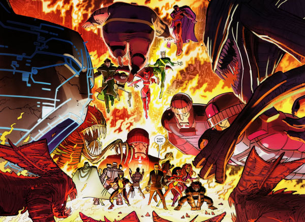 Our heroes split up to recover the remaining Infinity Gems leading each team into a bit of trouble as the members of the Illuminati didn’t exactly make them easily accessible. Along the way we learn Noh-Varr doesn’t understand sarcasm (much to Spider-Man‘s dismay), and the fact that Tony Stark now owns Area 51.