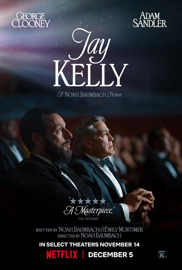 The latest from writer/director Noah Baumbach, which he co-wrote with Emily Mortimer, is a sentimental look at aging movie star Jay Kelly (George Clooney) just entering a reflective period of his life (explored in flashbacks) whose attempts to connect with either of his grown daughters (Riley Keough and Grace Edwards) is hindered by decades of him choosing his career over them.