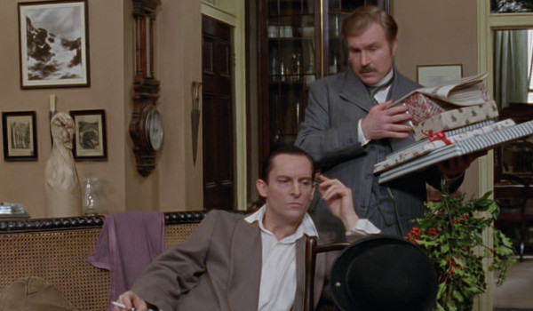 Sherlock Saturday takes us back to 221 B Baker Street and the Granada Television’s faithful adaptations of the adventures of Sherlock Holmes. Adapted from Sir Arthur Conan Doyle’s short story, the mystery involves the theft of a near-priceless gemstone, known as the Blue Carbuncle, which was stolen from the Countess of Morcar’s (Rosalind Knight) hotel room. The police arrest a known criminal seen at the hotel near the time of the robbery, however coming into the mystery by entirely different means (involving an abandoned goose and hat stumbled upon by Inspector Peterson during the owner’s run-in with ruffians), Holmes (Jeremy Brett) finds the missing gem literally dropped into his hands and spends the rest of the episode discovering how it ended up there.