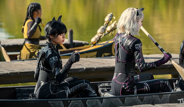 Parents Weekend brings a family therapy session for the Addams and the return of Gozmez (Luis Guzmán) to town for the first time since his graduation from Nevermore Academy. Wednesday (Jenna Ortega) confronts both parents about the murder that occurred which allows for some flashbacks to events. The sudden apparent suicide of the coroner leaving an auspicious note about that murder case from long ago also gives Sheriff Galpin (Jamie McShane) the excuse he’s been looking for to finally arrest Gomez Addams for murder.