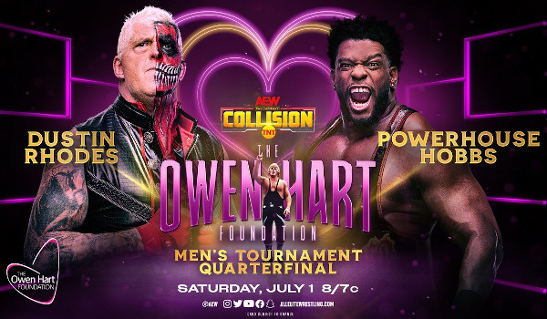 - The second match of the night was an Owen Hart Tournament Quarterfinal match with Dustin Rhodes falling to Powerhouse Hobbs. Match was memorable for a multiple close pins for Dustin including one after a Cross Rhodes followed by a piledriver, and the interference from QT Marshall leading Hobbs to victory.
