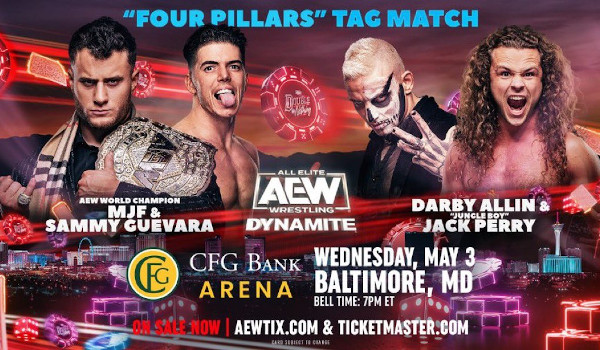 The May 3rd edition of AEW Dynamite offered Adam Cole and Orange Cassidy in an 8-man tag against the JAS, a trios battle royal, and a four pillars tag match featuring Darby Allin, Jungle Boy, Sammy Guevara, and MJF with major implications for Double or Nothing.
