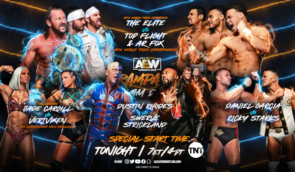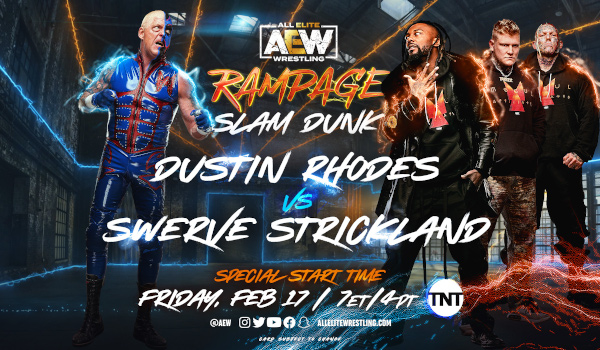 Taped to air leading into TNT’s coverage of NBA All-Star weekend AEW Rampage kicked off its February 17th edition with a rematch for the AEW Trios titles. Ricky Starks also battled Daniel Garcia, Jade Cargill had a (short) title defense, and Swerve Strickland got a surprise following his match against Dustin Rhodes.