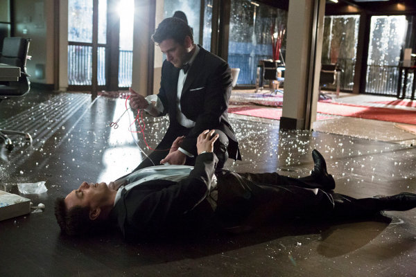 Unable to force Malcolm outside into Deadshot’s crosshairs, China White and her team force father and son upstairs towards the panic room in Malcolm’s office and a clean vantage point for Deadshot to kill the target. After dispatching most of her crew, Green Arrow goes one-on-one with China White (in a pretty good fight sequence), but looses the assassin when McKenna and Starling City’s finest show up.