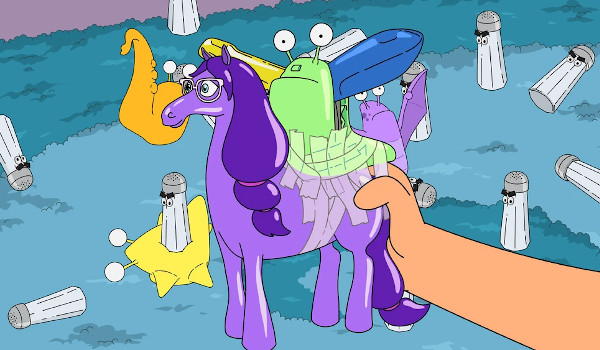 Sisters is the theme of “They Slug Horses, Don’t They?” as Louise (Kristen Schaal) and Tina (Dan Mintz) get in an escalating argument after Louise borrows Tina’s toy without asking, and then breaks it when attempting to give it back to her sister. Her attempt to avoid apologizing by creating a cartoon of them as the characters of each of their toys (Louise as a slug and Tina as the horse) that blames Louise for everything only escalates the argument further. Unexpectedly, it’s Gail (Megan Mullally) who plays peacemaker between the girls providing an example of her own struggles with their mother.