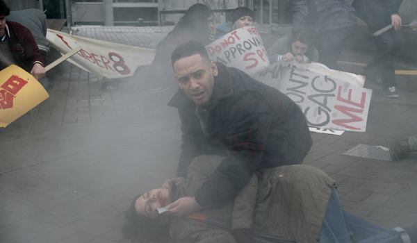 The friction between Kiera (Rachel Nichols) and Carlos (Victor Webster) only gets worse while the pair argue over college disturbances caused by students embracing Liber8‘s anti-corporate message. Campus security is attacked while trying to disband one rally (which Carlos brushes off as nothing more than campus kids fighting authority), but when a campus officer opens fire killing three members of another rally including Rebecca Barton (Tanaya Beatty) Kiera and Carlos jobs won’t get any easier.