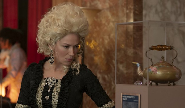 The return of the reboot’s first villain, Alexandra Bligh (Lucy Taylor), offers the opportunity for an all-girls episode with the team stretched across the globe. The fact that the team is never stretched this thin, with everyone working separately, is simply a conceit you’ll have to allow in order for events to play out. After kidnapping Sophie (Gina Bellman), Bligh pits nemeses Parker (Beth Riesgraf) and Astrid (Alexandra Park) against each other commanding one to steal a priceless treasure on display and the other to prevent the theft. The costume ball, in honor of the displays of Marie Antoinette, prevents the pair from running into each other for most of the episode until they finally do in the vault leading to the confrontation Bligh has been hoping for.