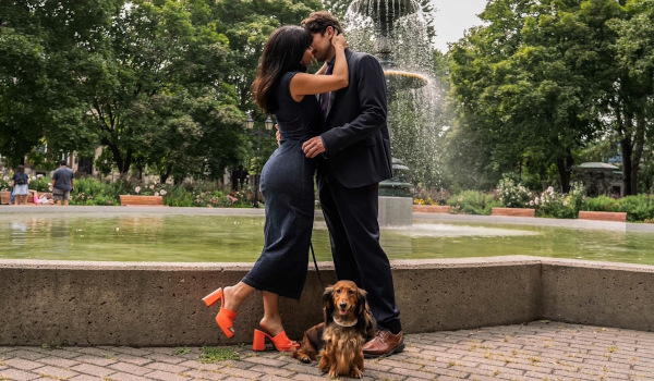 Adapted from Stefanie London’s novel The Dachshund Wears Prada, Paws in the City has more bark than bite. The TV-movie casts Emeraude Toubia as failed social media consultant Issa, whose downfall we see early in the film. Needing a job and running into the new CEO of a publishing house whose grandmother left him a troublesome dachshund Camilla who seems to take to Issa, Theo (Carter Jenkins) hires her on the spot (despite his hatred of publicity in general and social media especially).