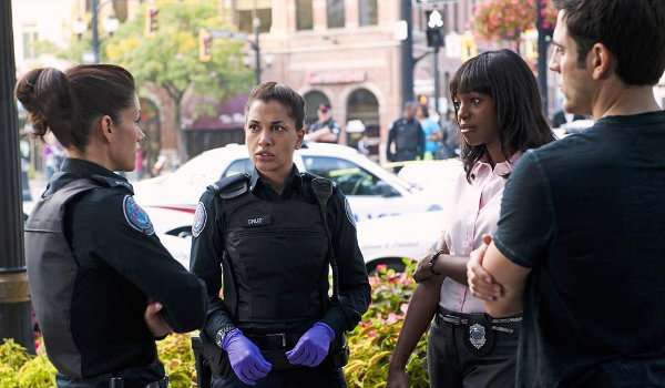 While trying to convince not to accept his transfer and stay at 15, Epstein (Gregory Smith) is approached by frightened young woman (Cristina Rosato) who only speaks Italian. While driving the woman around the city to try and get a clue to her story, Epstein and Diaz run into the standoff between the robber and Andy and Swarek (Ben Bass).