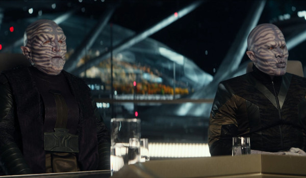 Number One (Rebecca Romijn) and Lieutenant La’an Noonien-Singh (Christina Chong) discover “Enterprise Bingo” and decide to have a bit of fun themselves with most of the crew on shore leave. And we also get a glimpse at the complicated relationship issues of Nurse Chapel (Jess Bush) who is quick to dump a date going poorly to help Spock (which also begins to tease romantic feelings Chapel has for the ship’s Science Officer). Everything works here, and themes from the separate stories blend together as T’Ping discovers more about Spock’s duty on-board the Enterprise, Spock learns to open up about his fears that he is too human for her, Pike (Anson Mount) gets to take a hunch on the negotiations that is in part colored by the Vulcan’s experience of seeing through each other’s eyes, and the normally serious Number One and La’an are allowed to have a bit of fun.