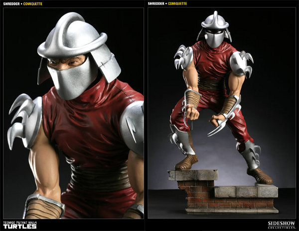Sideshow Collectibles limited edition 16in. Shredder Comiquette Polystone Statue (complete with switch-out regular, masked, and shadowed faces) can be yours for the low, low price of $224.99 (or $150 on sale if you grab him right now!).